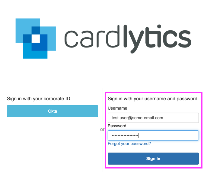 - Sign in with your email and password (not Okta). Enter your email address and your temporary password provided from the email invite (both are case sensitive!) to complete the account setup: